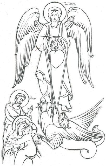 It is is in the line drawing that so much will hinge if this is to succeed. This is where individual styles will come through and the most successful ones will be those that connect with people today. My personal inclination is to look to the traditional canon of iconographic images and to make the drawing conform to the iconographic prototype, albeit in a Western, naturalistic way (a sort of updated Romanesque, influenced by Matthew Paris).