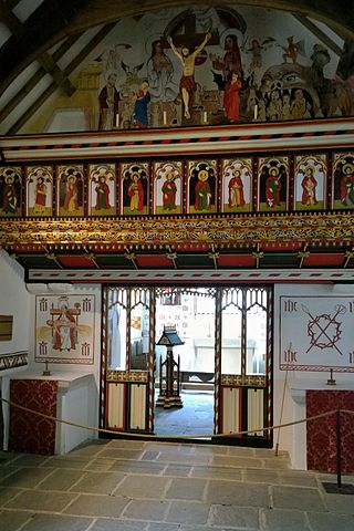 This church was relocated from its original site to one near Cardiff in the 1980s and so is preserved as a museum piece in this form.