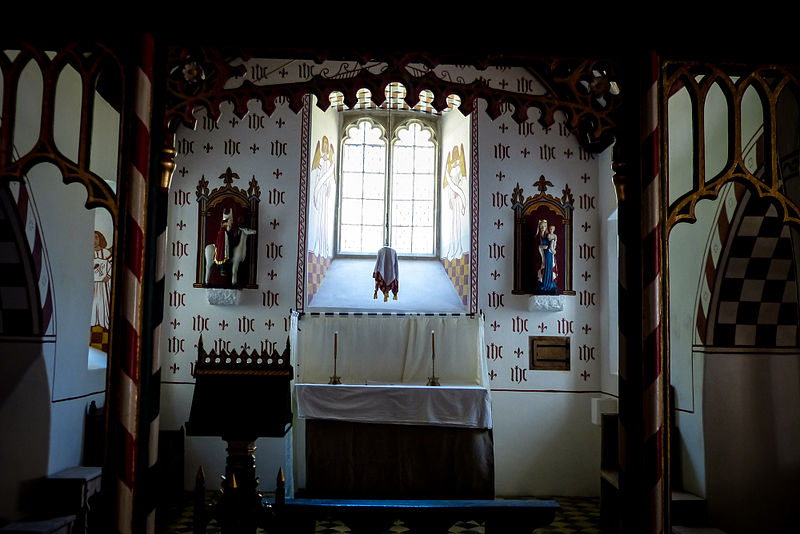 What makes this an even better example to study is that it has been renovated to look exactly as it would have in the 1400s, and I think this shows more than ever that this might be a style which is appropriate for the liturgy and would be feasible to create today. It would be simple enough to execute, and naturally lend itself to an adapted form of expression that would connect with people today. You can see many more examples online here.